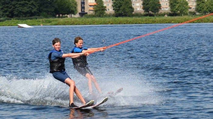 In week 3 en 4 van de zomervakantie maken we de normale waterweek net een tandje stoerder. Naast zeilen, windsurfen en kanoën gaan we ook 4 ochtenden waterskiën en wakeboarden.